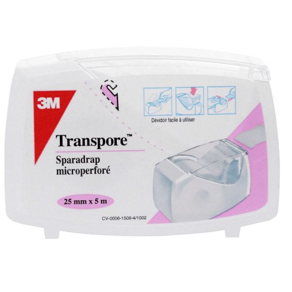 Le sparadrap hypoallergénique Transpore est conçu pour la fixation rapide et sûre de petit matériel médical de type drains, cathéters et tubulures, sur zones fixes ou mobiles. Il s’adapte tout autant au matériel qu’à l’épiderme grâce à sa texture en plastique microperforé qui favorise le passage des fluides et laisse respirer la peau. Sa perméabilité ne l'empêche pas, cependant, de résister aux liquides et de conserver son pouvoir de fixation.